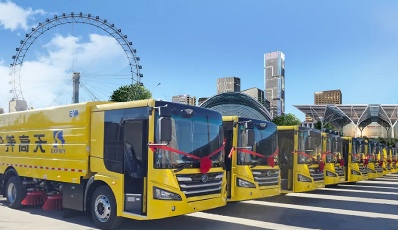 /宇通重工/宇通純電動高速掃路車批量交付天津,助力綠色養(yǎng)護升級!